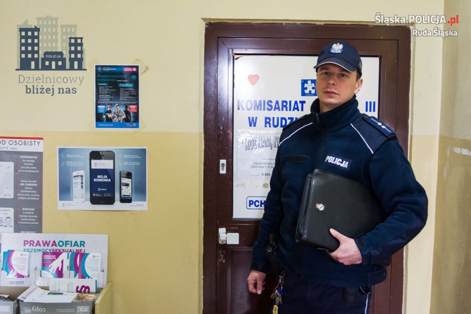 Aspirant Piotr Żukowski – dzielnicowy z Komisariatu Policji III w Rudzie Śląskiej – Kochłowicach w policji służy już 14 lat, a od 5 lat jest dzielnicowym w części Bykowiny, swój rejon zna bardzo dobrze, tak też o nim mówią mieszkańcy jego dzielnicy. Dzielnicowy na co dzień rozmawia z mieszkańcami swojego rejonu, wysłuchując ich problemów i bolączek. Problemy, które trapią mieszkańców nie pozostają bez reakcji, asp. Żukowski stara się je zawsze rozwiązywać. W trakcie obchodu, informuje mieszkańców o idei programu „Dzielnicowy bliżej nas”, możliwości przekazania informacji poprzez "Krajową Mapę Zagrożeń Bezpieczeństwa", a także o funkcjonowania aplikacji "Moja Komenda".