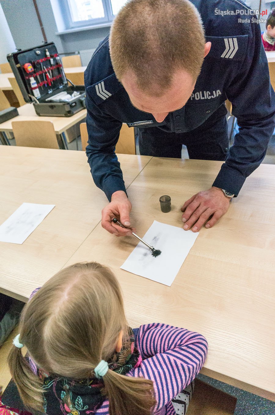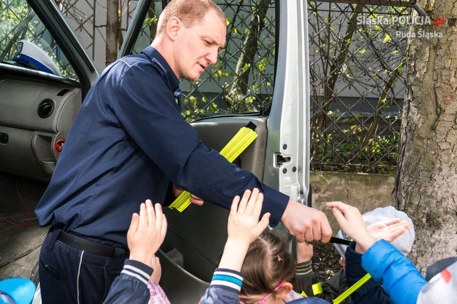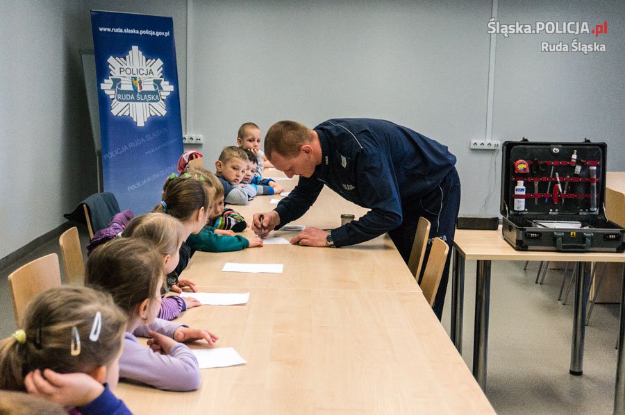 Wwczoraj rudzką komendę odwiedziły dzieci z Przedszkola Miejskiego nr 4 w Rudzie Śląskiej. Przedszkolaki zapoznały się z pracą techników kryminalistyki, policjantów prewencji i drogówki. Maluchy zadawały szczegółowe pytania o pracę w komendzie policji, a dzięki wizycie mogły tej pracy przyjrzeć się z bliska. Najmłodsi zobaczyli, jak wyglądają ich linie papilarne pozostawione na kartkach papieru, a kilkoro miało okazję zobaczyć swoje odciski palców na specjalnym komputerze. Oczywiście nie obyło się również bez zdjęć, takich jakie wykonuje się przestępcom! Mali goście doskonale wiedzieli, jak zadzwonić na policję i jaki trzeba wybrać numer, a przy okazji widząc pracę policjantów dzieci dowiedziały się, że jest to służba bardzo odpowiedzialna, a maluchy mogą zaufać mundurowym i zawsze poprosić ich o pomoc. Przy tej okazji sierż.szt. Roman Aleksandrowicz pokazał dzieciom nową aplikację „Moja Komenda” która ułatwia dotarcie do komisariatu i kontakt z dzielnicowym, tak aby dzieci zachęcały rodziców do jej zainstalowania na swoich telefonach, a w przyszłości same z niej korzystały. Na koniec policjanci pokazali dzieciom, jak wygląda mobilne biuro drogówki, czyli specjalistyczny samochód do obsługi zdarzeń drogowych i wręczyli im odblaskowe opaski programu profilaktycznego „Moje Bezpieczne Dziecko”.