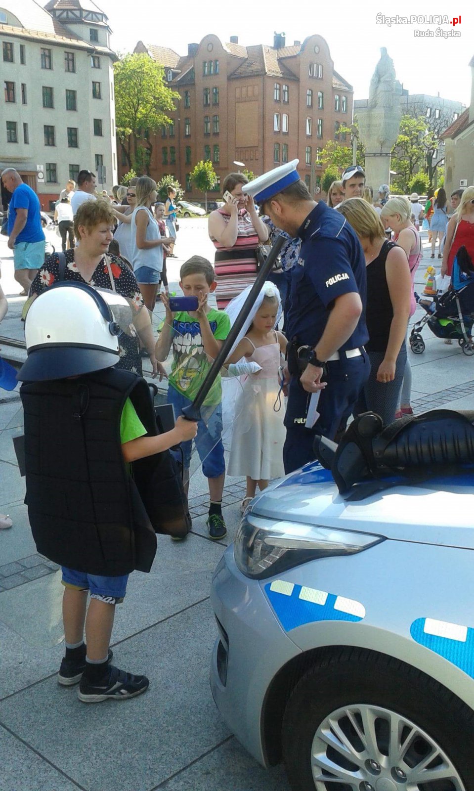 W sobotę na placu Jana Pawła II odbył się festyn z okazji "Dnia Dziecka". W czasie festynu policjanci spełniali marzenia milusińskich. Dzieci mogły obejrzeć sprzęt policyjny oraz zasiąść za kierownicą radiowozu. Mundurowi rozdawali odblaskowe opaski, które po zmroku lub w trakcie jesienno-zimowej aury poprawiają widoczność pieszych. Oczywiście można było dowiedzieć się od policjantów co należy zrobić, aby zadbać o własne bezpieczeństwo i to nie tylko na drodze. Największym zainteresowaniem wśród młodych mężczyzn był jednak sprzęt ochronny używany przez policjantów w trakcie tłumienia zamieszek czy ochrony dużych imprez. Każdy chłopiec chciał założyć kamizelkę chroniącą przed uderzeniami oraz zasłonić się tarczą. Nie obyło się również bez wizyt w policyjnym radiowozie i wypróbowania sygnałów dźwiękowych. Najważniejszym był jak zwykle uśmiech dzieci.
