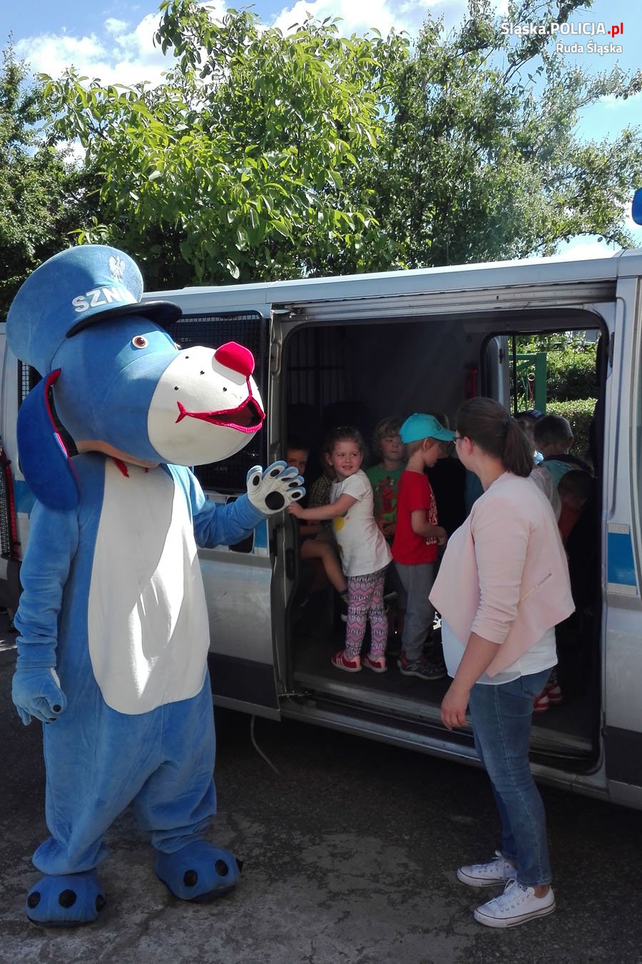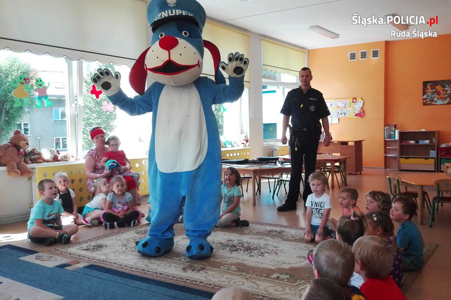 Policjanci z kochłowickiego komisariatu odwiedzili Przedszkole Miejskie nr 42. Stróże prawa zaprezentowali maluchom podstawowe zasady bezpieczeństwa pieszych, a także rozmawiali z dziećmi o bezpiecznym zachowaniu w domu i na podwórku, szczególnie w trakcie zbliżających się wakacji. W trosce o bezpieczeństwo mieszkańców naszego miasta rudzcy policjanci prowadzą działania, polegające m. in. na prowadzeniu edukacji wśród najmłodszych, czyli dzieci w wieku przedszkolnym i wczesnoszkolnym. Tym razem dzieci z przedszkola w Kochłowicach mogły gościć oprócz swoich dzielnicowych maskotkę śląskiej policji psa Sznupka.