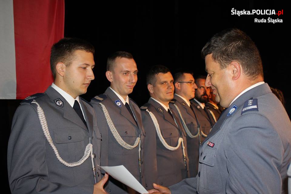 Policjanci z rudzkiego garnizonu swoje doroczne święto obchodzili w czwartek 13 lipca w Sali Widowiskowej Miejskiego Centrum Kultury. 109 policjantów z rąk Zastępcy Komendanta Wojewódzkiego Policji w Katowicach inspektora Piotra Kucia odebrało akty mianowania na wyższe stopnie służbowe. 20 mundurowych otrzymało nagrody Prezydent Miasta Ruda Śląska.