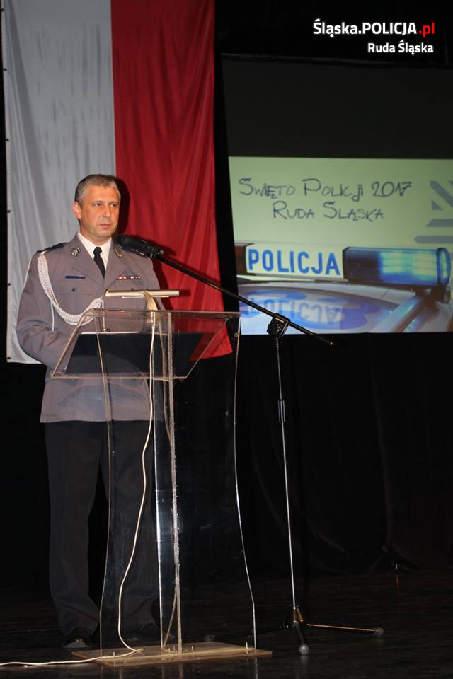 Na koniec uroczystości głos zabrał Zastępca Komendanta Wojewódzkiego Policji insp. Piotr Kucia, który podziękował gościom zebranym na sali za wsparcie i pomoc okazaną rudzkim stróżom prawa. W rocie ślubowania, którą każdy z nas składał zakładając mundur, zobowiązaliśmy się, że będziemy wykonywać swoje obowiązki służbowe nawet z narażeniem swojego życia i tak się niestety dzieje w zawodzie policjanta – powiedział insp. Piotr Kucia. - Dziękuję wam za podejmowany trud codziennej służby, za poświęcenie, podejmowane przez was ryzyko i dyspozycyjność. Chciałbym również przekazać słowa uznania i podziękowania za codzienne wsparcie waszym rodzinom i bliskim oraz w sposób szczególny pozdrowić emerytów policyjnych – mówił komendant Kucia.