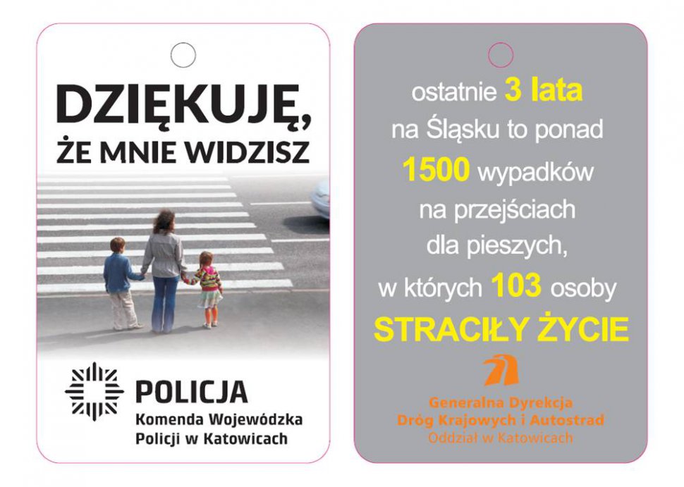 W trosce o niezmotoryzowanych Śląska Policja prowadzi kampanię profilaktyczną " Przejście oddaj pieszym" (więcej informacji o kampanii tutaj). Jej celem jest wzrost bezpieczeństwa pieszych oraz uzmysłowienie pozostałym użytkownikom ruchu drogowego, jak ogromne znaczenie na jego poprawę ma przestrzeganie obowiązujących przepisów. Do wielu zdarzeń z udziałem niechronionych uczestników dochodzi na przejściach dla pieszych i do tego z winy kierujących. Podjęte przez policjantów działania poparł drużynowy mistrz świata w skokach narciarskich Piotr Żyła. Prezentujemy film promujący kampanię.