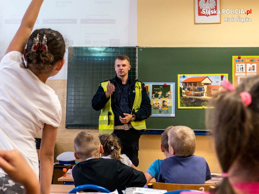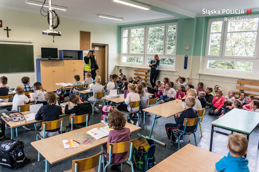 Policjant rudzkiej drogówki, jak co roku na początku września przeprowadził spotkania z uczniami klas I szkół podstawowych w ramach akcji „Bezpieczna Droga do Szkoły” i "Kręci nas bezpieczeństwo przez cały rok szkolny". Mundurowy pojawił się z krótkimi prelekcjami w niektórych szkołach. Podczas pogadanek, wspólnie z nauczycielami, uczył bezpieczeństwa na drodze.
