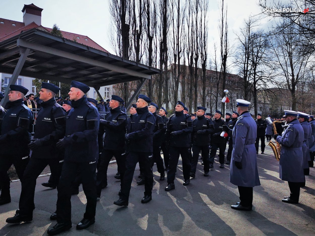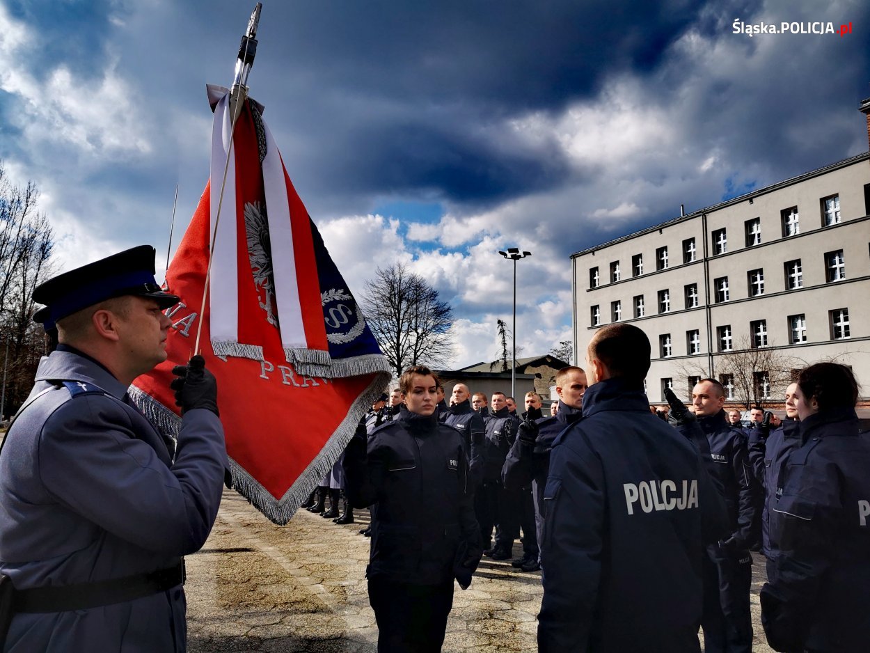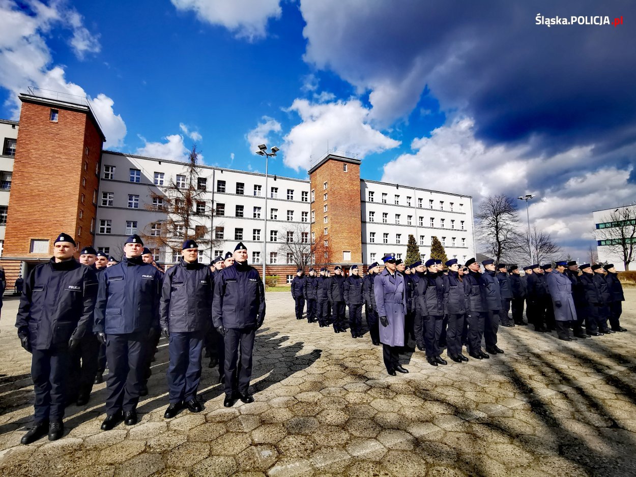 Wczorajsza uroczystość odbyła się na placu apelowym katowickiego oddziału prewencji. Ślubowanie od 99 nowych policjantów, przyjął Komendant Wojewódzki Policji w Katowicach nadinsp. dr Krzysztof Justyński. W uroczystości udział wzięli również: Komendant Szkoły Policji w Katowicach insp. dr Rafał Kochańczyk, Zastępca Naczelnika Zarządu w Katowicach CBŚP mł. insp. Michał Pudło, Dowódca Oddziału Prewencji Policji w Katowicach insp. Rafał Stanek, oraz komendanci miejscy i powiatowi, naczelnicy wydziałów KWP w Katowicach oraz Kapelan Komendy Wojewódzkiej Policji w Katowicach ks. Adam Wycisk. Świadkami ślubowania były również rodziny i bliscy nowych policjantów. Uroczystość uświetniła oprawa muzyczna Orkiestry Komendy Wojewódzkiej Policji w Katowicach oraz udział policyjnej kompani honorowej.