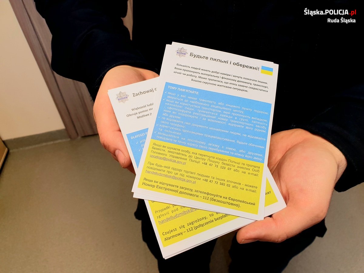 Policjanci przestrzegają uchodźców z Ukrainy, aby nie stali się ofiarami przestępstw