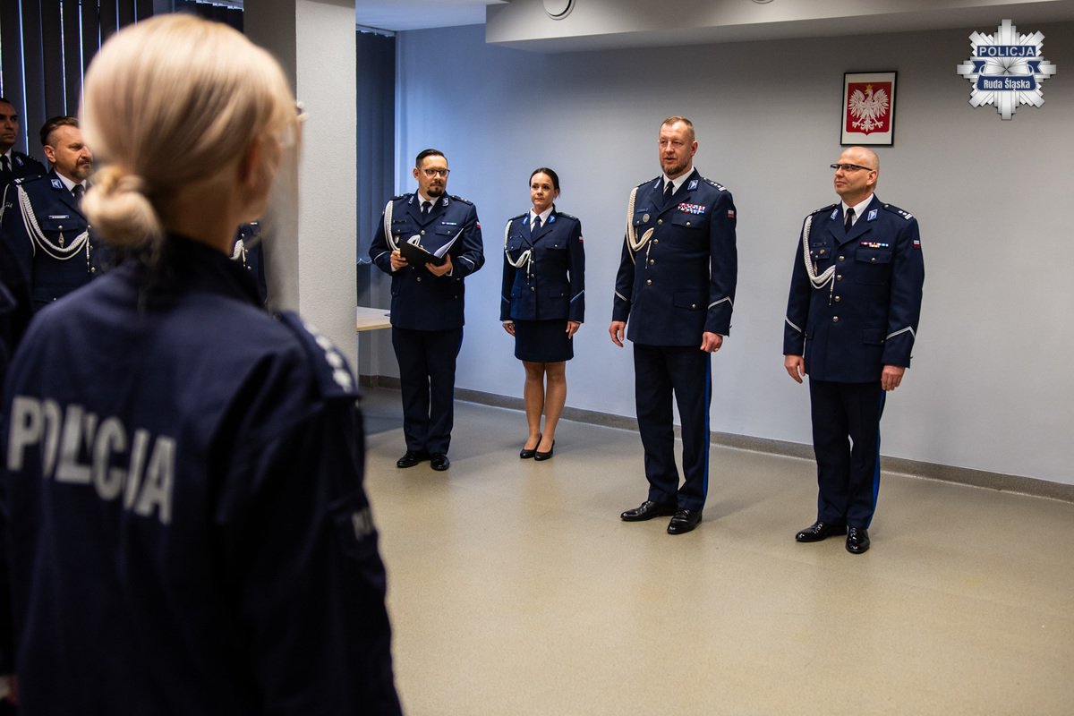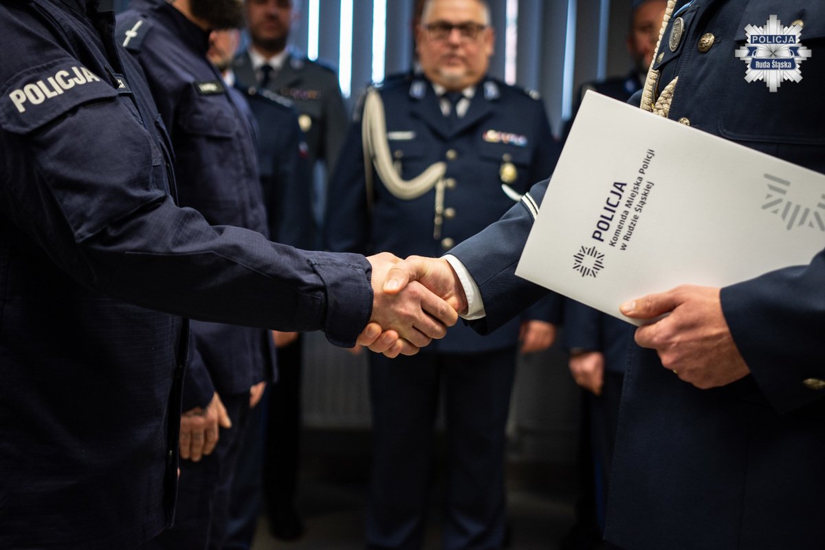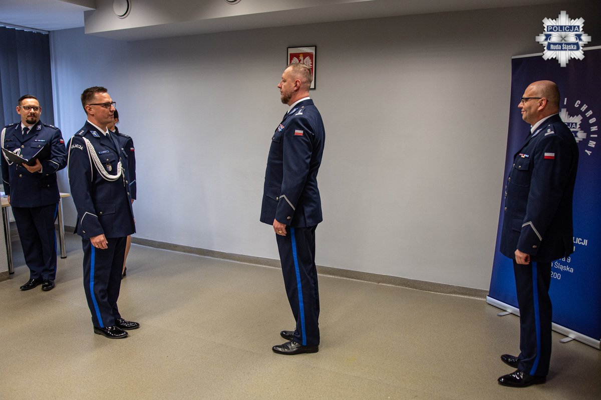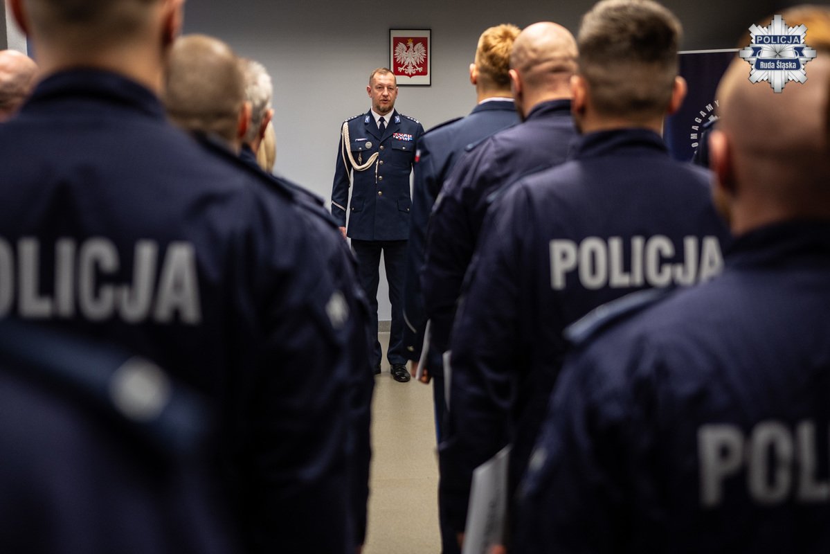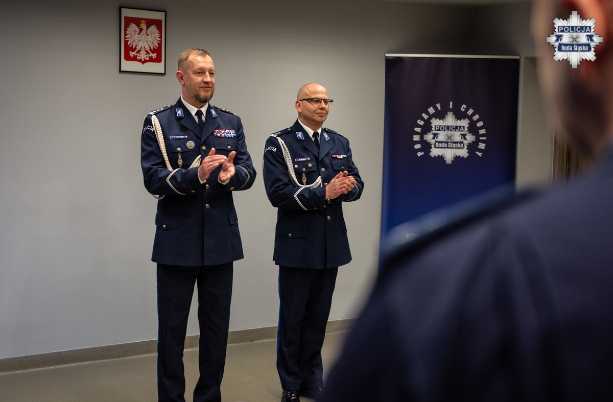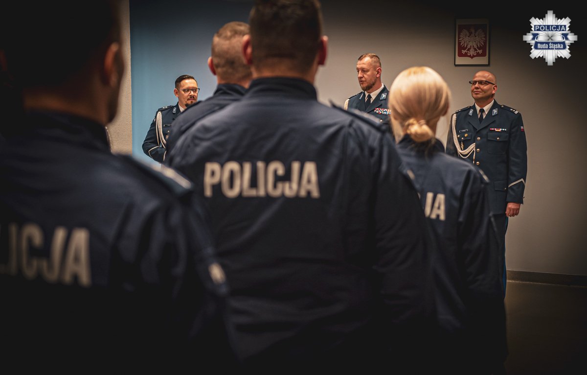 Podczas uroczystej zbiórki w rudzkiej komendzie, Komendant Miejski Policji insp. dr Piotr Uwijała wraz z zastępcą mł.insp. Grzegorzem Wróblem nagrodzili policjantów za wzorowe wykonywanie obowiązków służbowych, którzy wyróżnili się swoim zaangażowaniem w służbie. Zdecydowane działania mundurowych zaowocowały ujęciem sprawców wielu przestępstw. Uroczysta zbiórka była także okazją do wprowadzenia dwóch policjantów w poczet oficerów rudzkiego Garnizonu Policji.