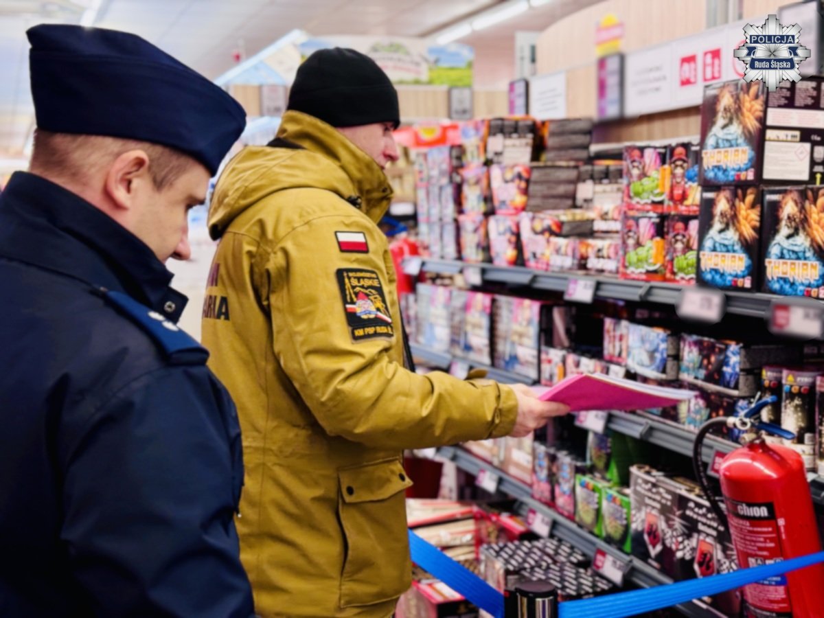 Policjanci z Komendy Miejskiej Policji w Rudzie Śląskiej wraz z przedstawicielem Komendy Miejskiej Państwowej Straży Pożarnej w Rudzie Śląskiej, jak co roku odwiedzają punkty handlowe, w których sprzedawane są fajerwerki. Mundurowi sprawdzają sposób sprzedaży materiałów pirotechnicznych, ich legalność oraz to, czy osoby, które je kupują, są pełnoletnie. Pamiętajmy, że nieprawidłowe obchodzenie się z materiałami pirotechnicznymi może zagrażać zdrowiu, a nawet życiu.