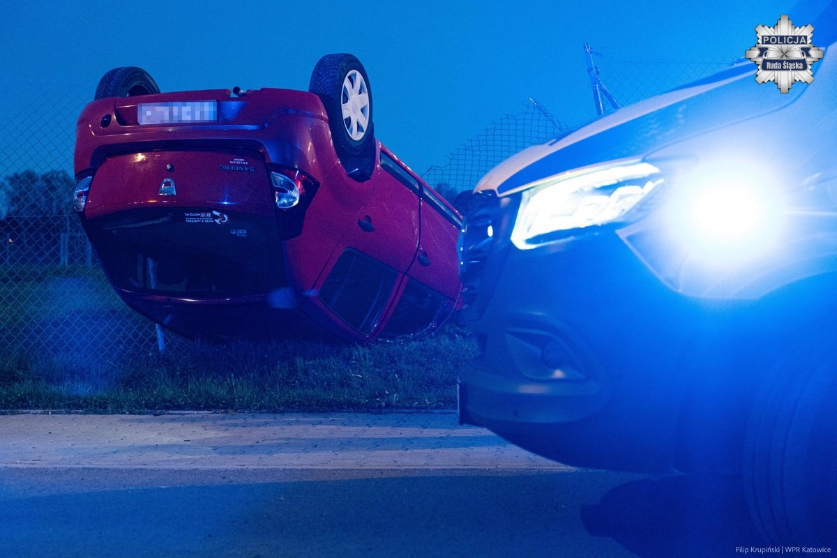 Na zakończenie świątecznego weekendu policjanci z rudzkiej drogówki, otrzymali zgłoszenie w sprawie zdarzenia drogowego, w wyniku którego doszło do dachowania pojazdu. Sytuacja ta miała miejsce w poniedziałek 6 kwietnia br. około godziny 19:15 przy ul. Edmunda Kokota w Rudzie Śląskiej. Policjanci ustalili, że kierująca Fordem, 20-letnia mieszkanka Katowic, poruszając się ul. Edmunda Kokota w kierunku dzielnicy Bielszowice na wysokości terenów przemysłowych, miała zamiar skręcić w prawo. Kierujący Dacią 50-letni mieszkaniec Wojkowic jechał w tym samym kierunku.